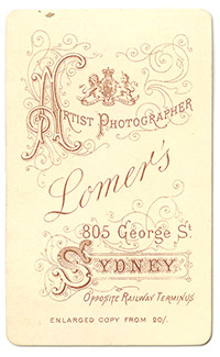 Lomer’s’s dates and locations from Alan Davies’ and Peter Stanbury’s book The mechanical eye in Australia: photography 1841-1900: